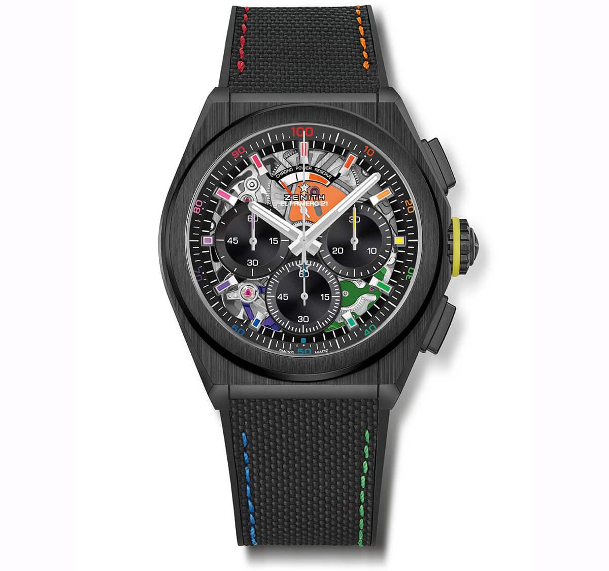 Za kontrast su zaduženi detalji visokofrekventnog hronografskog mehanizma oznake El Primero. Prvoklasni automatik u duginim bojama vidljiv je kroz otvoreni brojčanik.