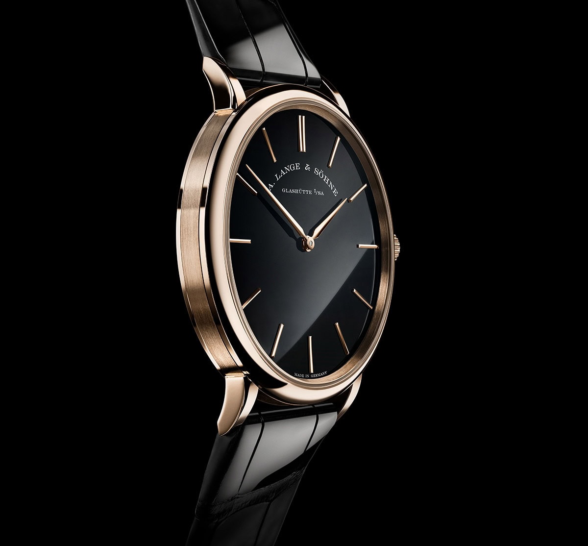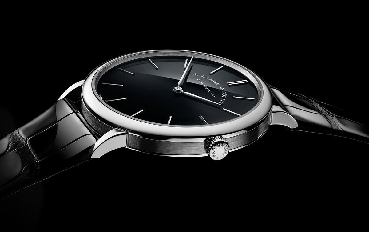 Lange se opredelio da obe reference oznake Onyx imaju kontrastni crni brojčanik koji se ističe svedenom elegancijom, vitkim satnim indeksima i klasično oblikovanim kazaljkama, što znači da tandem Saxonia Thin modela promoviše diskretni time-only prikaz i izuzetno jasno očitavanje vremena.
