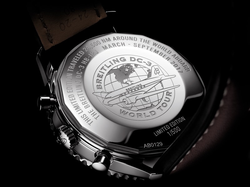 Kako bi obeležio ovaj događaj, Breitlnig je kreirao limitirano izdanje poznatog avijatičarskog sata Navitimer, još od 1952. kultnog među pilotima i avio entuzijastima. Ovaj sat je u Breitlingovom DC-3 putovao po svetu kako bi zaista postao deo avanture. Petsto primeraka Navitimer Breitling DC-3 World Tour sata biće podeljeno srećnim vlasnicima zajedno s dnevnikom u koji je kapetan beležio vremena sletanja i uzletanja, vreme leta, imena pilota, kao i vremenske prilike svake faze puta.