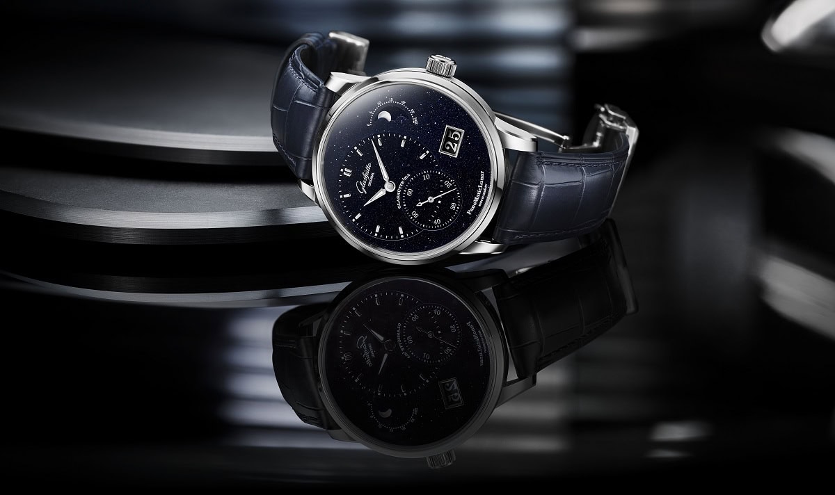 Za specijalnu priliku kakva je obeležavanje 180 godina od početka proizvodnje časovnika u Glashiteu, u radionici Glashütte Original premijerno je za izradu brojčanika korišćen tamnoplavi aventurin. Ovaj varijetet kvarca odlikuje se svetlucavim sjajem, pa je idealan materijal da brojčaniku modela PanoMaticLunar Anniversary Edition da potreban sjaj i dubinu kako bi se postigla jaka asocijacija na zvezde koje su bile glavna inspiracija talentovanim majstorima iz Glashitea.