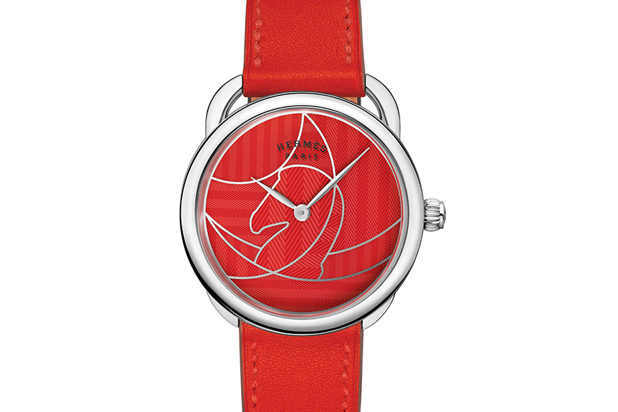 Savršeno okrugli Hermèsov sat Arceau s oblim ušicama kaiša, kreiran 1978, dobio je novo reizdanje u vidu ženske kolekcije Arceau Casaque, sastavljene od četiri razigrana modela ukrašena motivom konja i prugastim motivom (chevron).