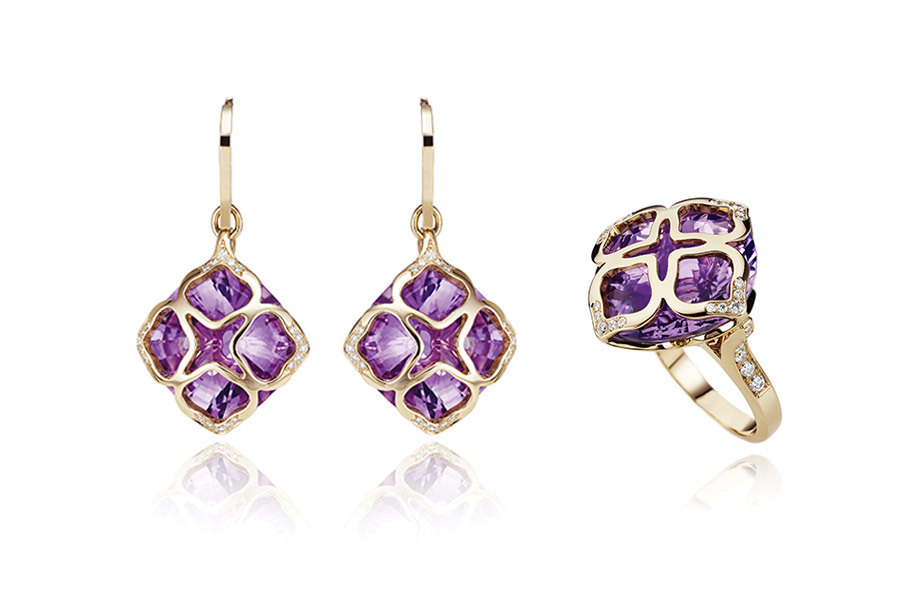 Chopardova kolekcija nakita Imperiale, izrađena od 18-karatnog ružičastog zlata oblikovanog kao fini vez i ukrašena ametistom, zaista je nakit dostojan kraljeva.