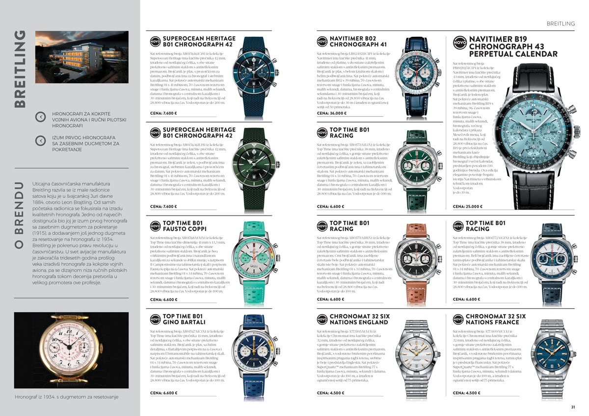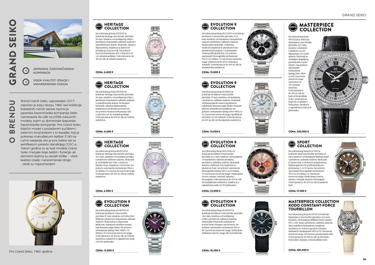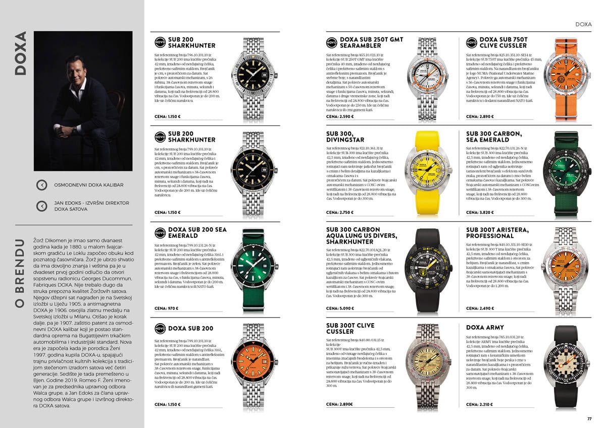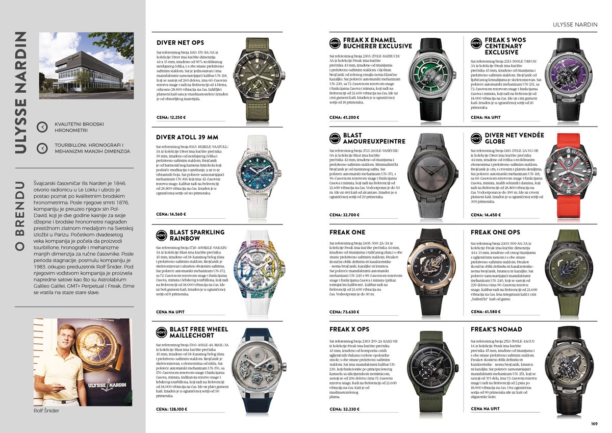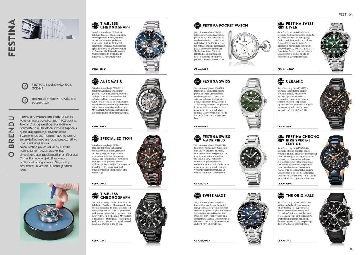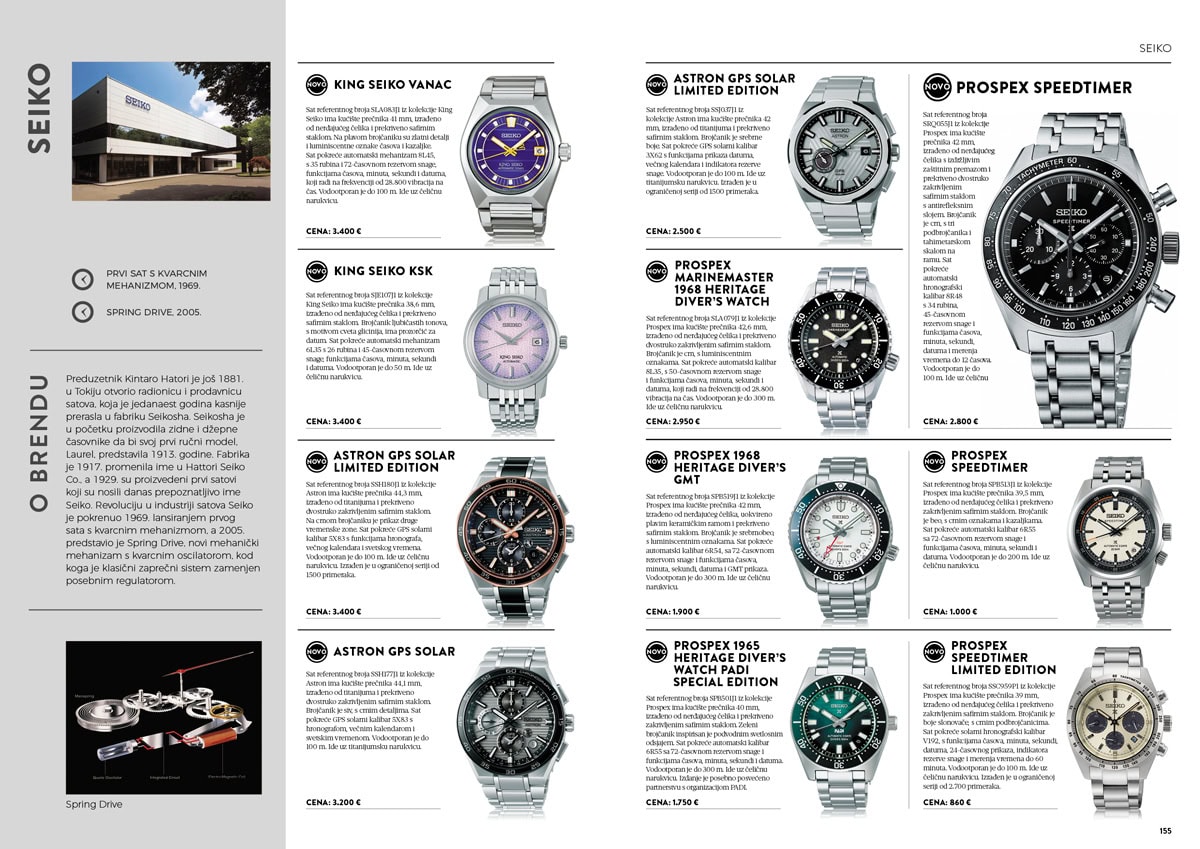 U ovogodišnjem izdanju nalazi se više od osamsto modela ručnih satova, jasno predstavljenih kroz fotografije, tehničke karakteristike i maloprodajne cene. Mehaničke komplikacije, sportski hronografi, elegantni klasici, kvarcni i hibridni modeli – ponuda je raznovrsna, a trendovi za 2026. godinu posebno ističu titanijum, keramiku, bronzu, čelik, kao i nove pristupe oblikovanju brojčanika i kućišta.